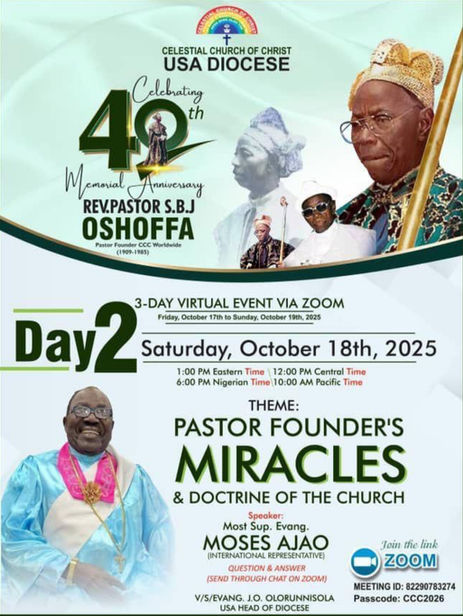 40th Memorial Anniversay of Rev. Pastor SBJ Oshoffa